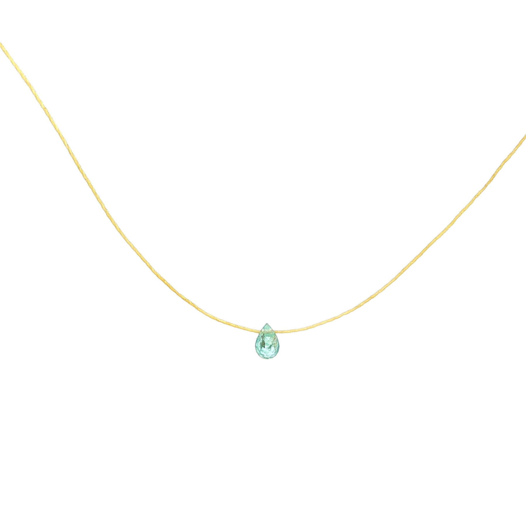 The Tiny Drop Necklace is a delicate gold-tone thread holds a tiny natural gemstone drop — available in Emerald, Turquoise, or Sapphire. Each stone is carefully hand-cut in a petite teardrop shape, offering subtle sparkle and everyday elegance. Lightweight, minimal, and perfect for layering or wearing solo.