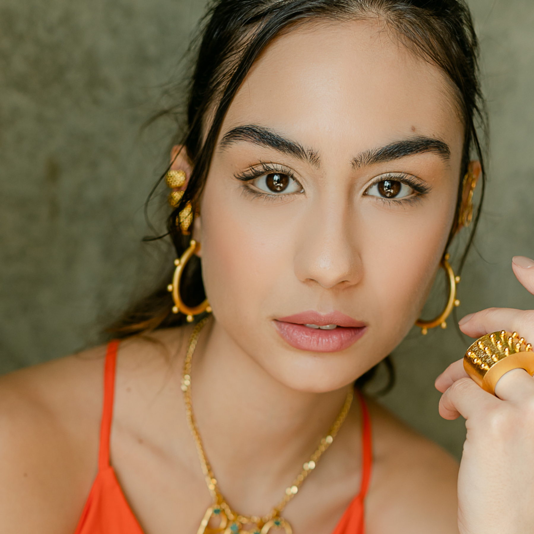 Earrings 100% handmade in Colombia in 24k gold plated over brass and cataphoretic coating.